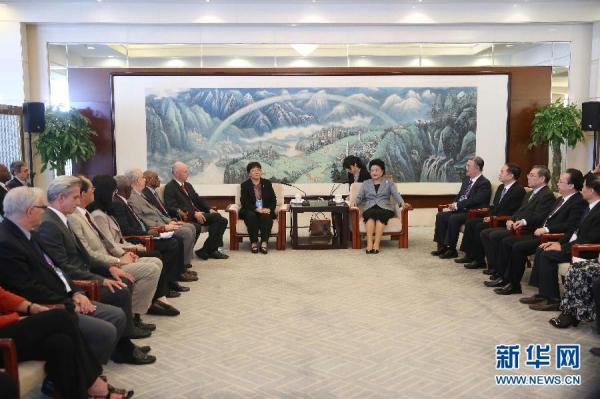 9月28日,国际医学科学院组织2016年全体成员大会在北京举行。国务院副总理刘延东出席会议并作主旨报告。会前,刘延东集体会见出席大会的主要嘉宾。新华社记者刘卫兵摄