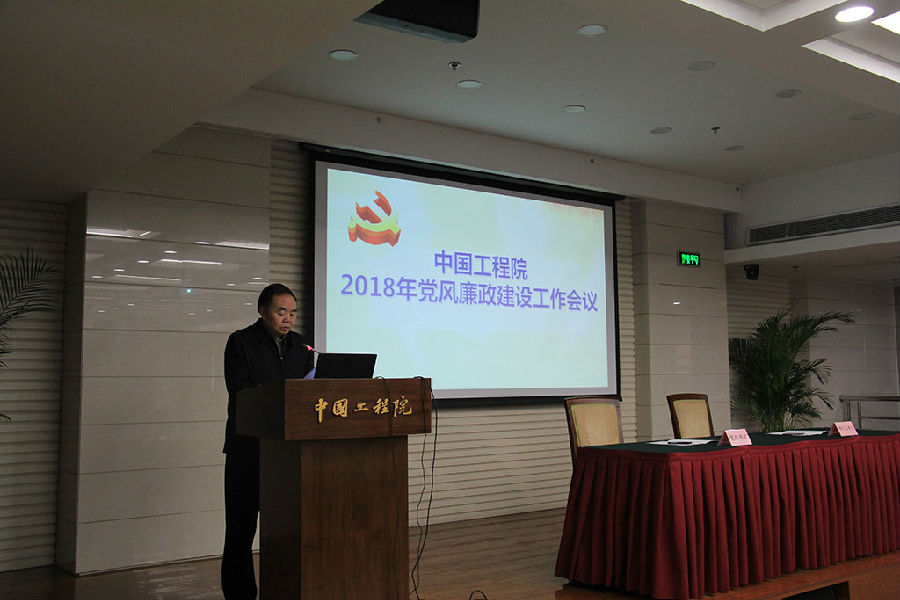 按照院党组统一安排部署,2月6日,中国工程院召开了2018年党风廉政建设工作会议。中国工程院院长周济同志,党组书记李晓红同志及其他院党组成员出席会议。会议由中国工程院党组成员、副院长、机关党委书记刘旭同志主持,院机关各部门和战略咨询中心全体党员干部参加会议。