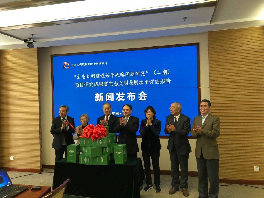 2019年4月22日,中国工程院“生态文明建设若干战略问题研究(二期)”重大咨询研究项目组在北京召开新闻发布会,正式发布项目研究成果暨生态文明发展水平评估报告。