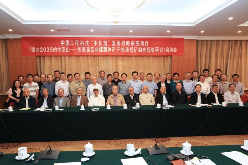 2019年5月13日,中国工程院“中长期”发展战略研究项目“面向2035的中高山-浅覆盖区非煤固体矿产快速找矿勘查战略研究”启动会在北京国谊宾馆召开。会议由中国地质科学院矿产资源研究所傅秉锋书记主持,中国工程院刘吉臻、蔡美峰、陈毓川、邓运华、康玉柱、裴荣富、王双明、翟光明、赵文津、郑绵平院士,中国科学院李廷栋、翟裕生院士,相关科研院所、勘查单位的专家学者和项目组人员共50余人出席了会议。