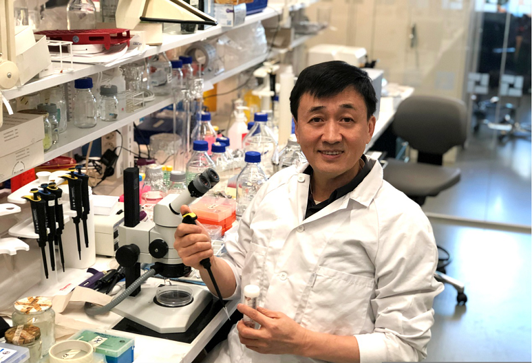 (图1:曹义海教授在瑞典卡罗林斯卡医学院实验室工作)
