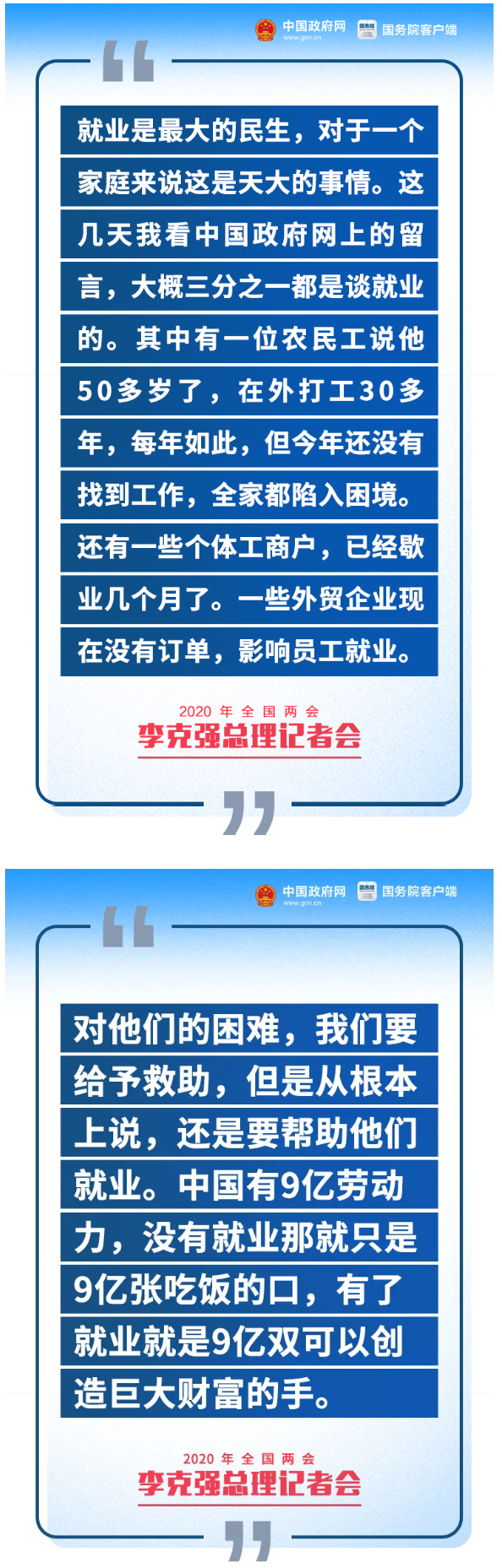 李克强:没有就业只是9亿张吃饭的口,有了就业就是9亿双可以创造巨大财富的手