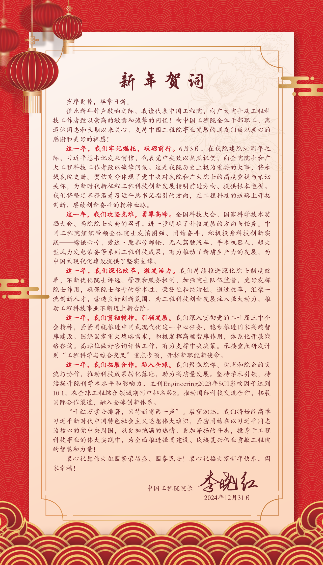 发挥国家战略科技力量作用,弘扬科学家精神,引领工程科技创新,加快突破关键核心技术,强化国家高端智库职能。
