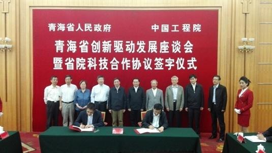 6月15日,应青海省人民政府邀请,结合2015中国·青海绿色发展投资贸易洽谈会,青海省创新驱动发展座谈会暨院省科技合作协议签字仪式在西宁举办。中国工程院副院长徐德龙、青海省人民政府省长郝鹏出席并讲话,徐德龙副院长、匡湧副省长代表院省双方续签《青海省人民政府与中国工程院科技合作协议》,黄伯云、郑绵平、尹伟伦、张懿、刘炯天、胡春宏、段宁院士、吴国凯副秘书长出席并见证签字仪式。