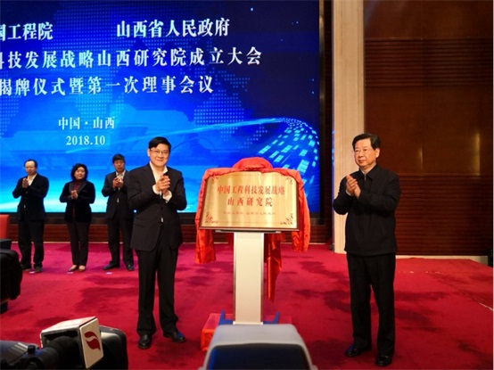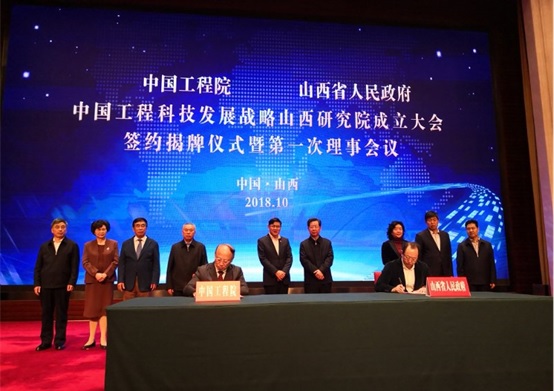 10月18日,中国工程科技发展战略山西研究院正式成立并召开第一次理事会会议。工程院院长李晓红、山西省省长楼阳生为山西研究院揭牌,并向理事、院长、学术委员会成员颁发聘书。工程院副院长何华武与山西省副省长王一新在共建合作协议上签字。赵宪庚、谢克昌、黄庆学、李兰娟、王一德、丁文江、张洪程、金智新、康红普等院士出席。