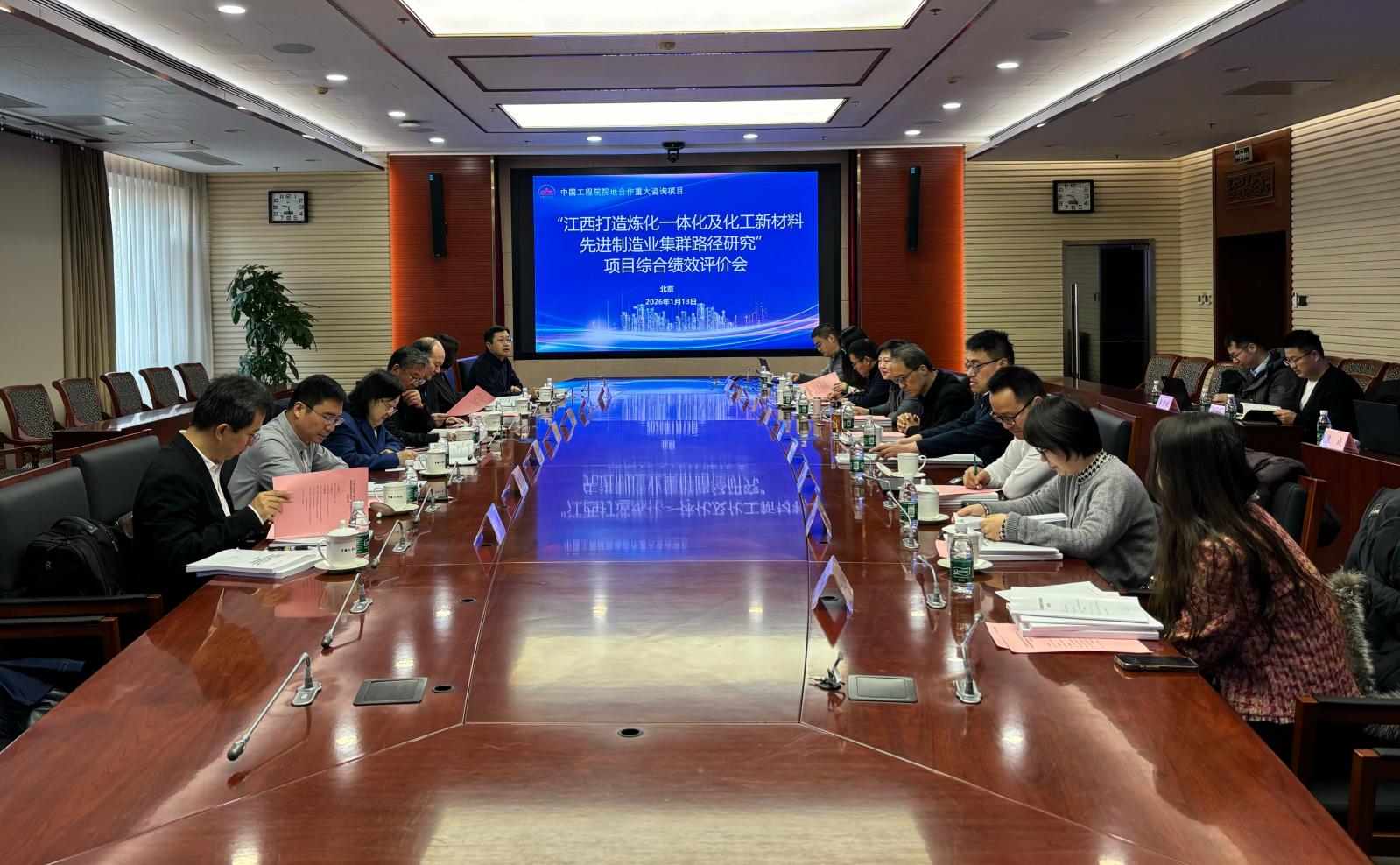 2026年1月13日,中国工程院院地合作重大咨询研究项目“江西打造炼化一体化和化工新材料先进制造业集群路径研究”综合绩效评价会在京召开。中国科学院院士徐春明,中国工程院院士杨超、聂红,中国石油科技管理部副总经理史君、中国海油化工与新材料科学研究院副院长侯章贵、北京工业大学副校长李建荣、清华大学化工系主任张强等专家出席会议并担任评审组专家。项目负责人、中国工程院党组成员、秘书长陈建峰,中国工程院三局副局长赵文成出席会议。会议由中国工程科技发展战略江西研究院副院长邹慧主持。