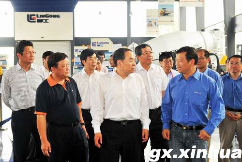 5月8日,中国工程院院长周济(右一)在柳工集团为企业提供咨询服务。