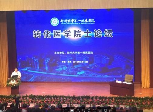2016年9月16-17日,由中国工程院医药卫生学部主办,郑州大学第一附属医院承办的转化医学院士论坛暨互联网医疗战略咨询会在河南省郑州市举行。中国工程院医药卫生学部杨宝峰、杨胜利、丛斌、王威琪、孙颖浩、宁光院士以及军事医学院陈薇研究员出席了本次活动,中国工程院三局李仁涵局长,河南省科技厅刘保民副巡视员、宋晖主任、张芳处长,南通市卫生计生委副主任顾锋、处长王晗,郑州大学第一附属医院院长阚全程、党委书记张水军等,河南省卫生计生委副主任黄玮等有关部门的领导和机关工作人员共40余人参加了此次活动。