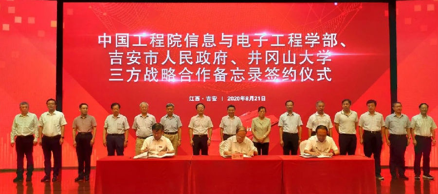 2020年8月21-23日,由中国工程院信息与电子工程学部主办,吉安市人民政府、井冈山大学承办的“中国工程院院士走进吉安”活动在江西吉安成功举行。陈左宁、卢锡城、李天初、赵沁平、费爱国、丁文华、姜会林、余少华、谭久彬、刘泽金、陈杰、王耀南、张平等13位院士为吉安市电子信息产业发展出谋划策。