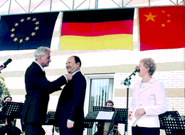 | 本报北京10月9日讯 记者徐步青、彭敏报道:德国驻华大使史丹泽今天在德国驻华大使馆举行授勋仪式,向持续为德中关系作出贡献的人士颁发德中友谊奖和德意志联邦共和国大十字勋章。 德中友谊奖于去年设立,今年的友谊奖颁发给全国政协副主席、中国工程院院长徐匡迪,中国政法大学教授岳礼玲,中央美术学院讲师曹克非。他们为深化德中经济、科研、艺术等领域的合作作出了重要贡献。 同一天,史丹泽大使还向科技部副部长刘燕华颁发德意志联邦共和国大十字勋章,以表彰他为在柏林和北京共同设立移动通讯和软件技术研究所而作出的努力。 |