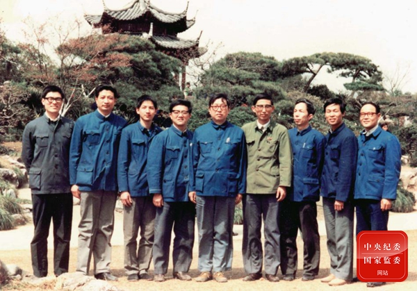 1984年潘云鹤(左一)与浙江大学计算机科学与技术学院创始人何志均教授(左五)等在一起