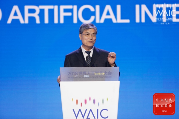 潘云鹤在2018年世界人工智能大会做主旨演讲