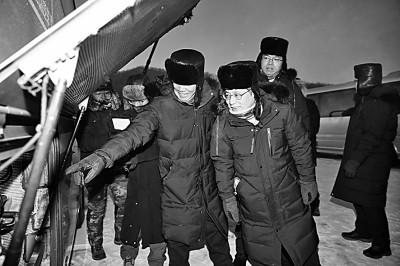 孙逢春(左三)在极寒环境测试现场。资料图片