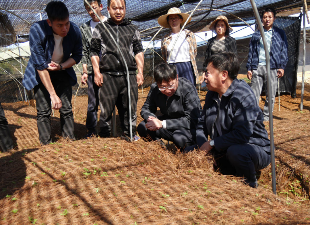 2月22日中午,朱有勇一到澜沧县,便带着云南农业大学扶贫团队赶到东回镇空港片区林下中药材乡村振兴示范园(以下简称“科技示范园”)查看一个个种植基地。在东岗村怕令村小组200亩林下三七育苗基地,66岁的朱有勇钻进育苗大棚,蹲在地旁,扒开松树叶,查看即将冒出头的林下三七苗。他站起身,对身旁的科研人员、企业管理人员和乡村干部说:“要注意补肥,按规范培植。”
