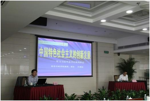 许耀桐教授利用自己的学习研究成果,深刻阐述了习总书记系列讲话中关于中国特色社会主义新论述和创新发展,分别从中国特色社会主义的新认知、新结构和新思路三个方面全面介绍了中国特色社会主义的创新发展。