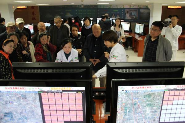 19日下午,资深院士们参观了北京市红十字会紧急救援中心(999)。999急救中心隶属于北京市红十字会,自2001年5月18日开通以来,急救各类患者两百余万人次,协助政府为北京市民提供了医疗急救保障。999急救中心还参与了四川汶川和青海玉树地震等重大和突发事件的现场救援工作。在中心领导的引导下,院士们参观了指挥调度大厅。目前,999急救中心拥有全亚洲最大的指挥显示屏和处置各类应急事故的指挥操作系统,各区县下设140多个急救中心分站,有急救车辆200余部,全部由中心垂直管理。目前已启用北京120/999紧急医疗救援联合指挥调度平台,实现120和999指挥调度的“信息互通、协调调度、双网联动、统一指挥”,出救时间平均15-20分钟。“999”在全国急救行业中率先开通了急救摩托车救援,并开通固定翼飞机和直升机飞机的救援服务,实现了城市内与城市间的救援与转运功能,建立了真正的立体救援体系。999急救中心的高科技硬件设备、完善的管理体制和有效的工作机制,给院士们留下了深刻的印象。