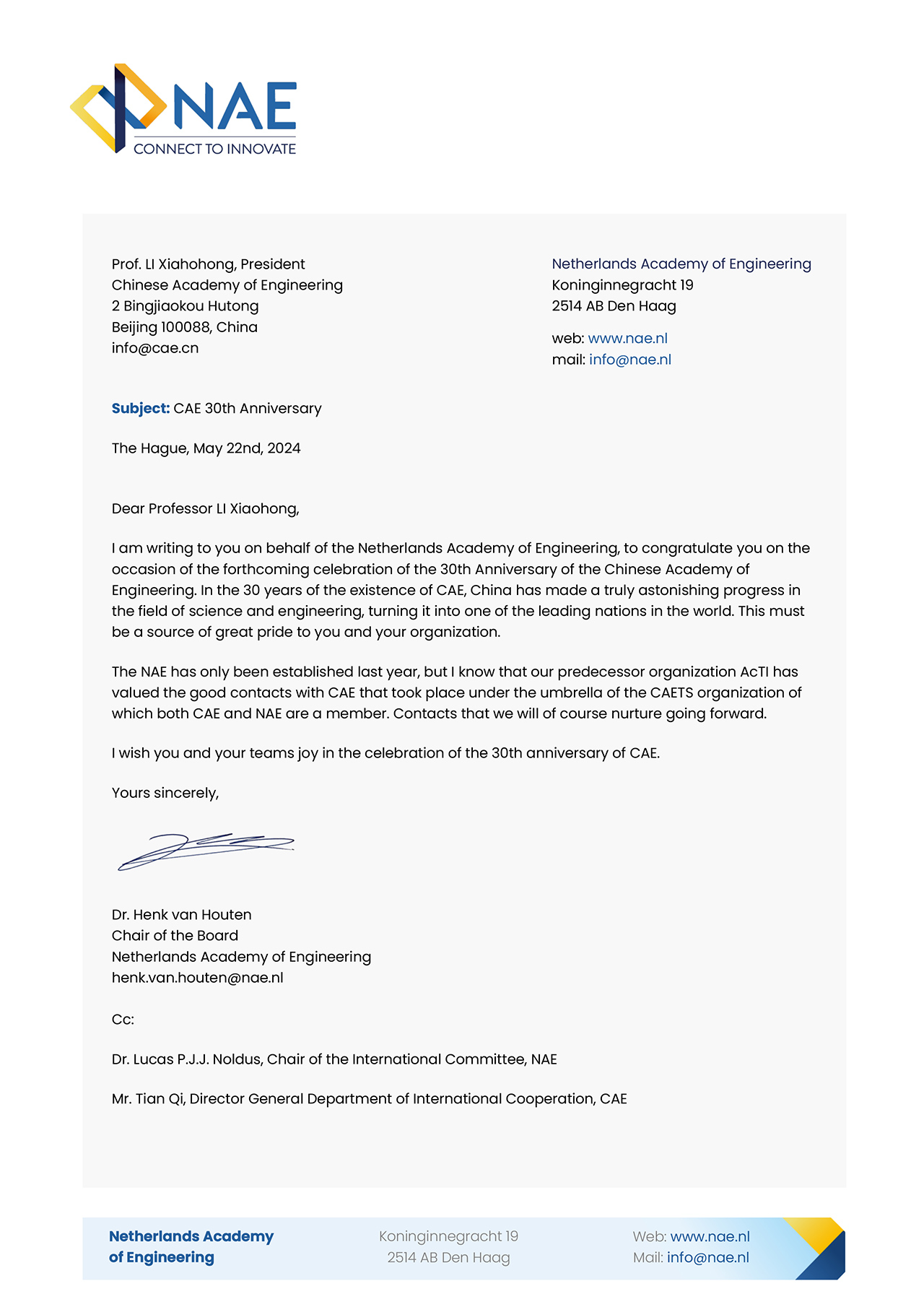 荷兰工程院贺信