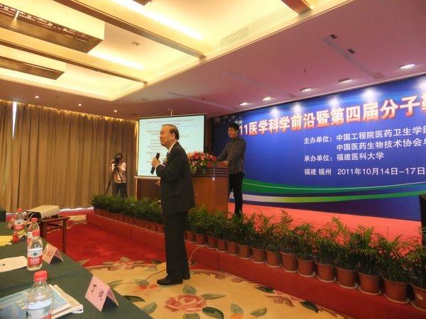 10月14—17日,2011医学科学前沿暨第四届分子靶向药物研究与应用研讨会在美丽的榕城福州召开。本次会议由中国工程院医药卫生学部、中国医药生物技术协会单克隆抗体专业委员会主办,福建医科大学药学院肿瘤中心承办,福建省科协及相关部门也给予了大力协助。甄永苏院士作为大会主席团主席之一在大会开幕式上致辞,陈志南院士、丁健院士出席了会议。此外,来自中国医学科学院、中国人民解放军总医院、中科院生物物理所、军事医学科学院、清华大学、浙江大学、南开大学、厦门大学、苏州大学、福建医科大学等单位的100余名专家学者参加了会议。