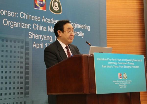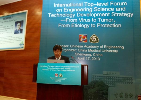 由中国工程院主办、中国医科大学承办的“国际工程科技发展战略高端论坛——从病毒到肿瘤,从病因到防治”于4月16-18日在沈阳召开。中国工程院医药卫生学部陈洪铎院士任大会名誉主席,中国医科大学附属第一医院副院长高兴华教授任大会主席,中国工程院副院长樊代明院士出席大会并致辞。