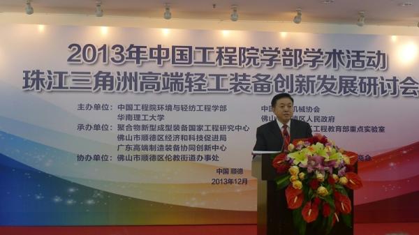 2013年12月10-11日,由中国工程院环境与轻纺工程学部、中国轻工机械协会、华南理工大学与佛山市顺德区人民政府共同主办的“珠江三角洲高端轻工装备创新发展研讨会”在广东顺德召开。环境与轻纺工程学部郝吉明、魏复盛、蔡道基、陈克复、周翔、蒋士成、侯保荣、张全兴、孙晋良、侯立安、段宁、瞿金平等12位院士以及来自全国各有关行业协会、科研院所、大专院校、相关企业共计200余位专家、学者和工程科技人员参加了本场研讨会。本次大会主席由瞿金平院士担任。