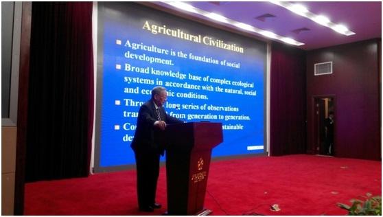 研讨会上,联合国粮农组织农业文化遗产指导委员会主席、农业部全球重要农业文化遗产专家委员会主任委员、中国工程院院士李文华,联合国粮农组织高级顾问、世界农业文化遗产基金会主席帕尔维兹•库哈弗坎,联合国秘书长助理、联合国大学常务副校长武内和彦,联合国粮农组织GIAHS总协调人榎本雅仁先后做了大会主题报告。