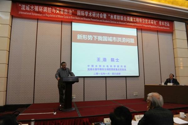 2015年1月6-7日,由中国工程院主办,中国水利水电科学研究院、流域水循环模拟与调控国家重点实验室、四川大学等单位共同承办的“流域水循环调控与灾害防治国际学术研讨会”暨 “水库群联合调度工程前沿技术研究学术交流会”在四川成都举行。王浩、陆佑楣、陈厚群、刘经南、钟登华、缪昌文、张建云、王超、李建成、谢和平、多吉等11位中国工程院院士,中国工程院二局阮宝君副局长、国际合作局康金城副局长,来自英国、日本的7位专家,以及国内相关行业领域专家共150余人出席。