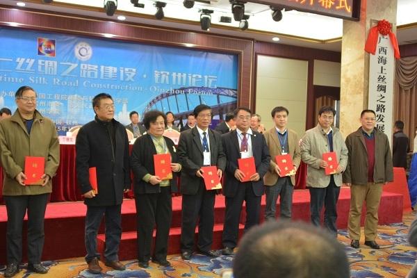 开幕式上,唐琮沅市长、王颖院士、蔡昌卓副厅长与赵君书记共同为广西海上丝绸之路发展研究院成立揭牌。会议还为丁德文院士、王颖院士等10位广西海上丝绸之路发展研究院顾问专家颁发聘书。丁德文院士被聘为研究院荣誉院长。