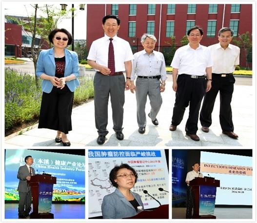 2016年6月17日至19日,由中国医疗保健国际交流促进会主办,本溪市人民政府、中国工程院医药卫生学部承办的中国(本溪)健康产业论坛在中国药都辽宁本溪举行。国家肝癌科学中心主任肿瘤学分子生物专学王红阳院士,复旦大学附属华山医院神经外科专家周良辅院士,中国疾病预防控制中心医学微生物学专家徐建国院士,首都医科大学附属北京同仁医院耳鼻咽喉头颈外科专家韩德民院士,上海交通大学附属第九人民医院口腔颌面外科专家张志愿院士,国家自然科学基金委员会医学科学部常务副主任董尔丹教授,云南农业大学校长盛军教授,沈阳药科大学党委书记吴春福教授、校长毕开顺教授,辽宁中医药大学党委书记曾庆捷同志、副校长徐凯同志,辽宁省金秋医院院长暴继敏教授,辽宁医药职业学院刘万芳书记,中国工程院有关部门领导,国家卫生计生委卫生发展研究中心和防聋治聋技术指导组有关专家,世界卫生组织(WHO)防聋合作中心有关专家,中国工程院重大咨询研究项目“中国健康服务业发展战略研究”项目组专家,本溪市政府领导、大健康产业领导小组成员单位及相关部门负责人,各县(区)领导及相关部门负责人,药都高校负责人,药都建设专家委员会成员,市医疗单位代表,药都企业代表,新闻媒体记者等近400余人参加了论坛。