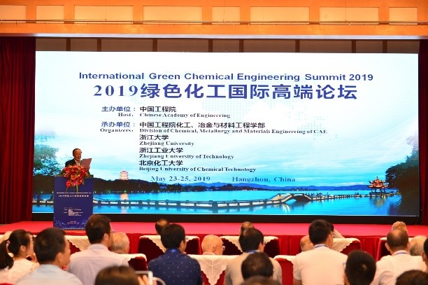 2019年5月23-25日,“2019绿色化工国际高端论坛”在杭州顺利召开。论坛由中国工程院主办,化工、冶金与材料工程学部、浙江大学、浙江工业大学和北京化工大学共同承办。本次论坛的主题为“追踪绿色化工研究前沿,把握绿色化工最新动态,共谋绿色化工发展前景”。论坛主席由中国工程院院士陈建峰、刘炯天、薛群基和谭天伟共同担任。中国科学院副院长张涛,中国工程院院士张寿荣、高从堦、曹湘洪、赵连城、桑凤亭、张联盟、朱利中、郑裕国等12位中方院士, Pierre Braunstein、Gerald Fuller等8位外方院士,以及国内外绿色化工相关领域的200余位专家学者、科研人员出席论坛。
