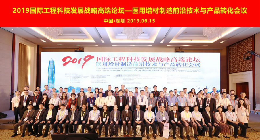 2019年6月14-16日,国际工程科技战略高端论坛——医用增材制造前沿技术与产品转化会议在深圳召开。论坛由中国工程院主办,中国工程院医药卫生学部、中国工程院化学、冶金与材料学部共同承办,中国医学装备协会医用增材制造专业委员会、中国医学科学院北京协和医院、上海交通大学材料科学与工程学院、中国科学院深圳先进技术研究院等十余家单位协办。中国工程院邱贵兴和丁文江院士共同担任大会主席,中国工程院原副院长干勇院士,中国工程院院士王泽山、卢秉恒、周克崧、陈祥宝、韩德民、张志愿、陈芬儿、张联盟、潘复生,中国科学院院士赫捷等13位国内院士,美国科学院、工程院、艺术与科学院三院院士David A. Weitz教授、美国工程院院士Kam W. Leong教授、加拿大工程院院士Mo Elbestawi教授、加拿大工程院院士杜如虚教授、法国国家技术科学院院士吕坚教授等400余位国内外专家学者参会。