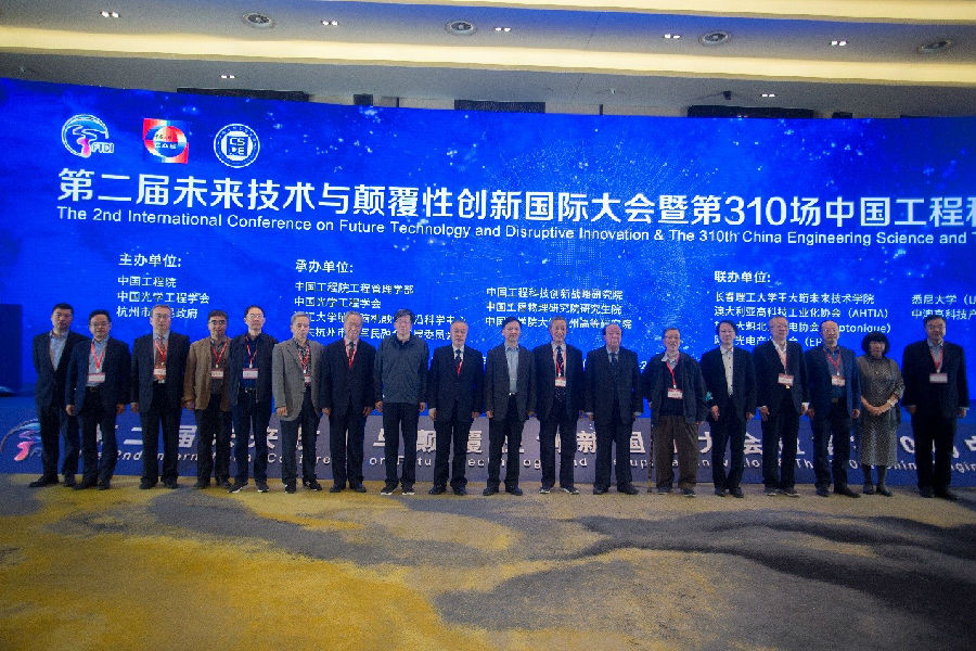 2020年10月25-26日,由中国工程院、中国光学工程学会、杭州市人民政府共同主办的“第二届未来技术与颠覆性创新国际大会暨第310场中国工程科技论坛”在杭州召开。中国工程院院士杜祥琬、吕跃广担任大会主席,赵宪庚、傅志寰、胡文瑞、包为民、胡思得、吴朝晖、段树民、柴洪峰、李家彪、邓建军、周济、王坚、王建宇等两院院士出席论坛。800余位国内外专家学者和代表通过现场或线上视频方式,汇聚本次盛会,围绕对经济发展和社会进步有重要作用和深远影响的未来技术、颠覆性创新主题进行交流。论坛针对电子信息、未来芯片、能源、人工智能和生物信息等五大重点方向设置五个分论坛,举行专题学术研讨及国际对接交流。
