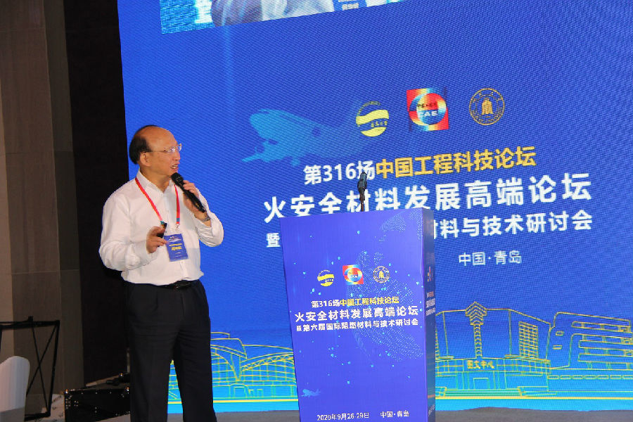 2020年9月26至29日,“第316场中国工程科技论坛—火安全材料发展高端论坛暨第六届国际阻燃材料与技术研讨会”在青岛召开。中国工程院副院长何华武院士,王玉忠、李仲平等11位两院院士和300余位相关领域专家参加本次论坛。青岛大学党委书记胡金焱教授、中国工程院化工、冶金与材料工程学部舒兴田院士、青岛市人民政府副市长耿涛在开幕式上致辞。
