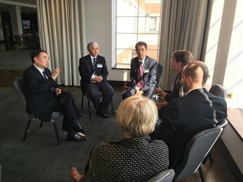 在9月13日正式会议前,我院彭苏萍院士和院机关工作团组还参加了9月12日召开的CAETS能源委员会会议和CAETS知识共享平台专家委员会会议。来自美国、英国、日本、墨西哥等国工程院的专家委员会成员出席了CAETS知识共享平台专家委员会会议。我院代表介绍了该平台建设的背景、目标、定位和指导原则,提出了关于其系统架构、功能与内容的初步设想,并且针对用户能够在平台上获取的服务做了在线演示。与会专家高度赞扬中国工程院对此项工作推进的热情和已经开展的前期工作,并针对该平台开发所涉及的投入、安全、用户定位、优先功能、未来工作流程等进行了讨论。