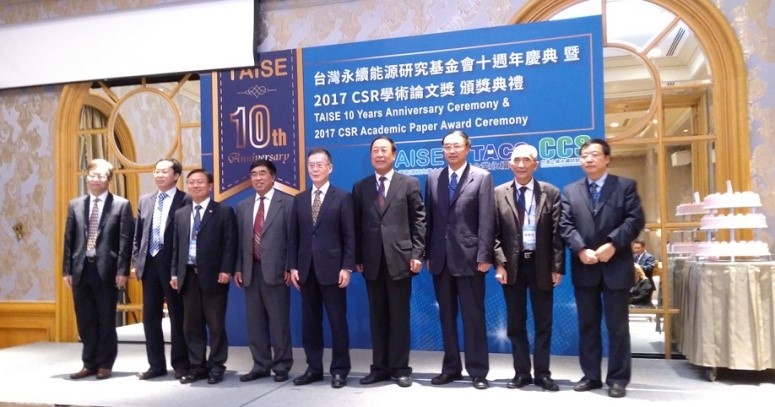 10月12日下午,大陆代表团受邀参加了台湾永续能源研究基金会十周年庆典暨2017CSR学术论文奖颁奖典礼。谢克昌院士在致辞中对台湾永续能源研究基金会成立十周年表示祝贺,并将中国工程院《推动能源生产和消费革命战略研究》、《中国煤炭清洁高效可持续开发利用战略研究》、《我国非常规天然气开发利用战略研究》、《能源金三角发展战略研究》等咨询项目成果丛书赠送台湾永续能源研究基金会。