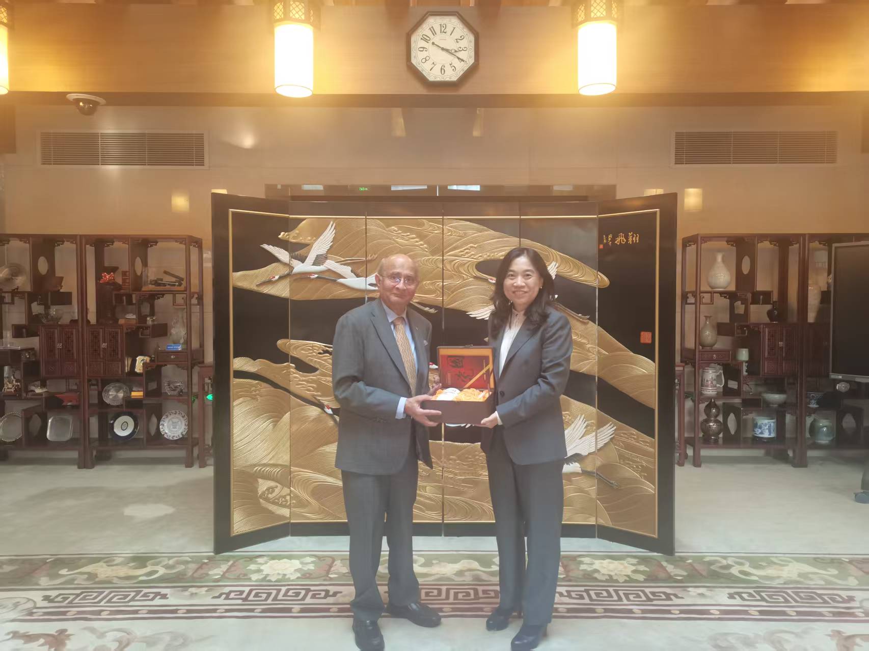 塔里克高度评价中国工程院在推动全球工程科技合作方面所作贡献,希望进一步深化双方在气候变化应对、高水平人工智能工业应用等方面的务实合作。他还以爱丁堡皇家学会院士身份,表达了拓展该学会与中国工程院合作的意愿,并邀请我院领导适时访问苏格兰。
