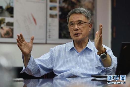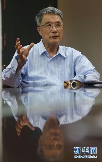 何继善在中南大学接受记者采访(5月25日摄)。 新华社记者 李尕 摄