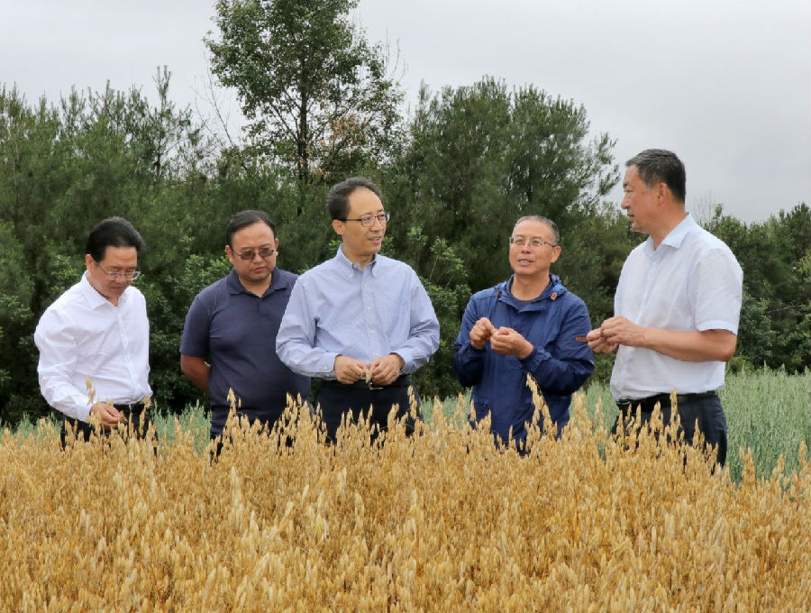 (陈建峰同志在大桥乡燕麦实验示范种植基地调研)