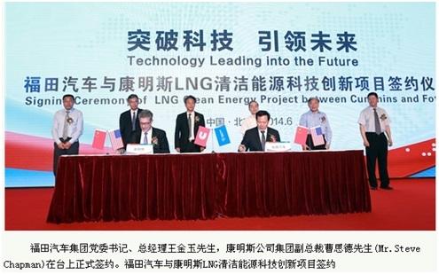 2014年6月7日,在北京福田康明斯发动机全球样板工厂里,标志着福田汽车集团与康明斯公司就清洁动力领域战略合作的“欧六及LNG清洁能源科技创新项目签约仪式”举行;同时,发布了代表着发动机领域顶尖技术的“康明斯ISG重型发动机量产下线”与世界级高性价比、高品质重卡“欧曼GTL超能版全球上市”仪式。