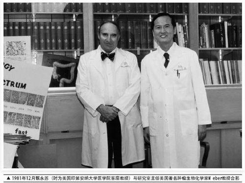 ① 甄永苏(时为美国印第安纳大学医学院客座教授)与研究室主任著名肿瘤生化药理学家Weber教授合影(1981年)。
