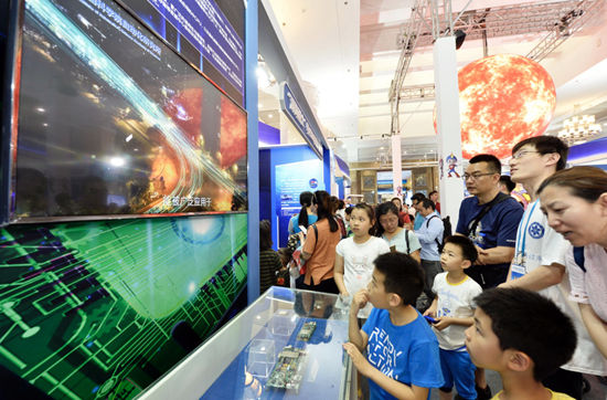 5月19日,在2018全国科技活动周现场,高新科技展示吸引青少年驻足。视觉中国供图