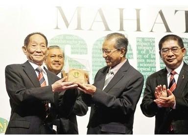 记者从国家杂交水稻工程技术研究中心获悉,马哈蒂尔科学奖基金会于北京时间1月31日,在吉隆坡为袁隆平颁发马哈蒂尔科学奖。该组织认为:袁隆平以独创性思维和胆识,在热带主要作物水稻育种中,培育出创新型成果杂交水稻,给全球带来水稻生产及可持续性革命化的发展。马来西亚前总理马哈蒂尔亲自为袁隆平颁发奖章和证书。