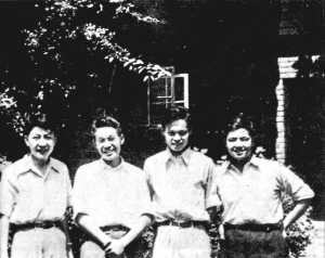 1947年,美国密西根州安阿堡市,朱光亚(左一)和张文裕(左二)、李政道(右一)。CFP供图