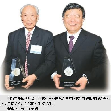 3月6日,由于在急性早幼粒细胞白血病研究中取得原创性成果及开发全新疗法,中国工程院院士王振义和中国科学院院士、卫生部部长陈竺在美国领取了由全美癌症研究基金会颁发的第七届圣捷尔吉癌症研究创新成就奖。