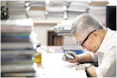 邱中建院士在北京的办公室查看示意图(7月24日摄)。新华社记者 金立旺摄