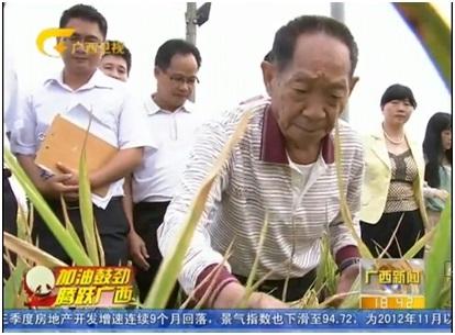 中国工程院院士 袁隆平:“我认为很不错了,我预计的产量在700公斤左右亩产,这在广西桂南算是一个突破,因为一般产量都是500公斤左右,有700公斤左右增产的幅度就很大了,增产40%以上了。 ”