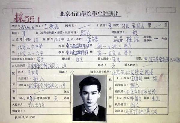 王德民在北京石油学院的学生注册卡。