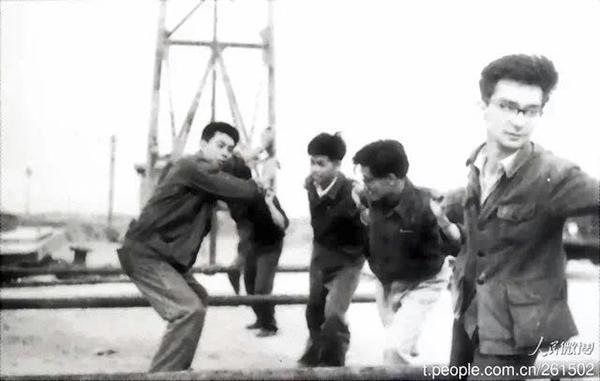 王德民(右一)早年工作照。