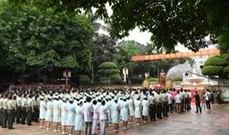 王云贵校长、夏阳政委为黎鳌院士铜像揭幕,李仁涵局长、夏阳政委分别代表中国工程院和第三军医大学敬献花篮,并整理挽联,全体人员肃穆而立向黎鳌院士铜像鞠躬致敬,王云贵校长发表讲话,深情表达对院士的缅怀和崇敬之情。