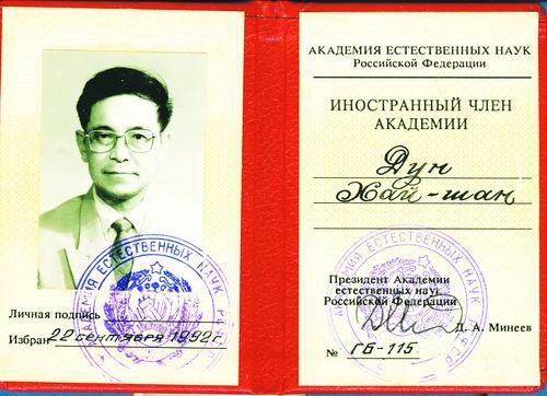 ②1992年,董海山获俄罗斯自然科学院外籍院士证书。