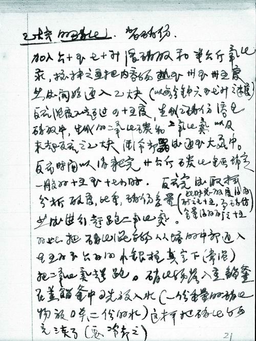 ③1960年,董海山关于炸药合成方法的学习笔记。